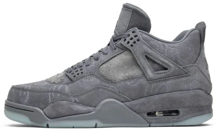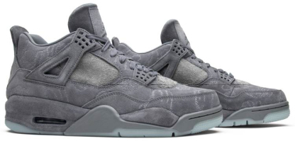 The KAWS x Air 4 Retro is a collaboration between the Brand and Brooklyn-based street artist KAWS . a.k.a. Brian Donnelly. The design removes the silhouette閳ユ獨 traditional plastic accents and dresses the entire upper and midsole in a premium grey suede upper. The sneaker also features KAWS閳?閳ユX閳?branding on the heel tab. The shoes were released alongside a small capsule collection that included a coaches jacket . hoodie . t-shirt . and hat in March of 2017. The hype was so intense for this release that the in-store raffle at Patta in London was read the riot act by the police and sneakerheads hacked into Donnelly閳ユ獨 website for a chance at the drop.