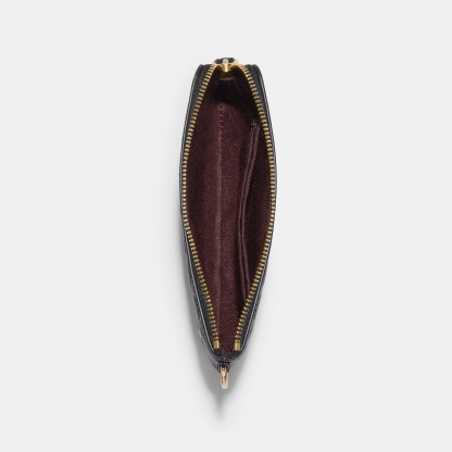 Signature smooth calf leather Two credit card slots Zip-top closure fabric lining Wrist strap attached 6 1/4 (L) x 4 (H) x 1/2 (W) Includes removable charms Packaged in a gift box with ribbon. Ribbon color may vary from what is pictured. Style No. CF358 | Outlet Boxed Corner Zip Wristlet In Signature Leather - Black