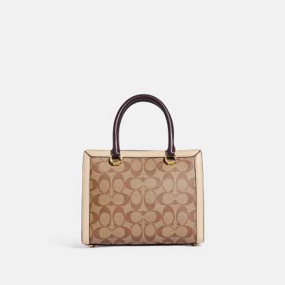 Signature coated canvas smooth leather refined pebble leather and snake-embossed leather Inside multifunction pocket Zip closure fabric lining Handles with 4 drop Outside slip pocket with magnetic closure Detachable strap with 21 3/4 drop for shoulder or crossbody wear Four protective feet at base 9 1/4 (L) x 7 (H) x 4 1/2 (W) Style No. CC142 | Outlet Grace Carryall In Signature Canvas - Beige