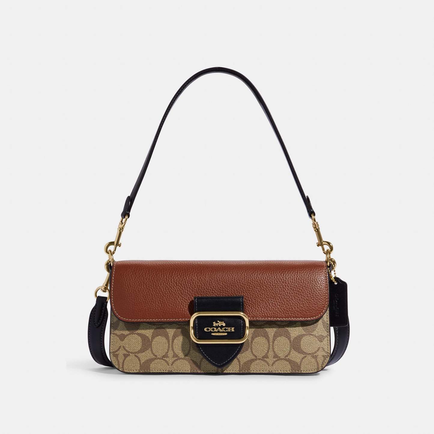 Signature coated canvas refined pebble leather and smooth leather Inside zip and multifunction pockets Snap closure fabric lining Detachable handle with 9 drop Outside open pocket Detachable strap with 21 1/4 drop for shoulder or crossbody wear 10 1/2 (L) x 5 1/2 (H) x 2 1/2 (W) Style No. CE560 | Outlet Morgan Shoulder Bag In Colorblock Signature Canvas - Beige