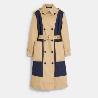 68% cotton 32% polyester Combo shell - 100% polyester Lining - 100% polyester Button closure Slip pockets Adjustable belt Length - 43 1/2 Model is 5'10 (178cm) chest 31 (79cm) waist 24 (61cm) hips 35 (89cm) and wears a size S Style No. CE401 | Outlet Signature Quilted Trench - Multi, Size - X-Large