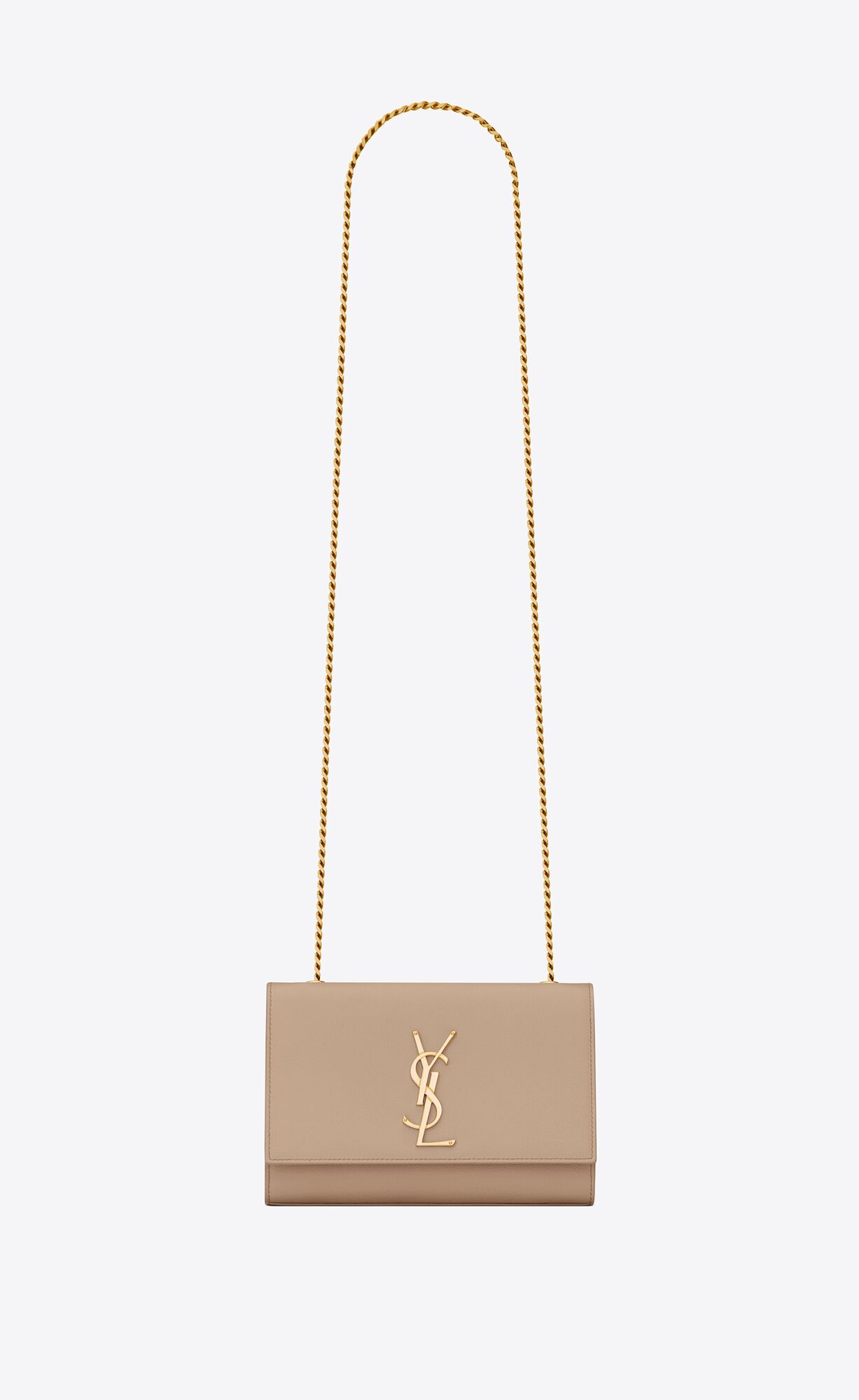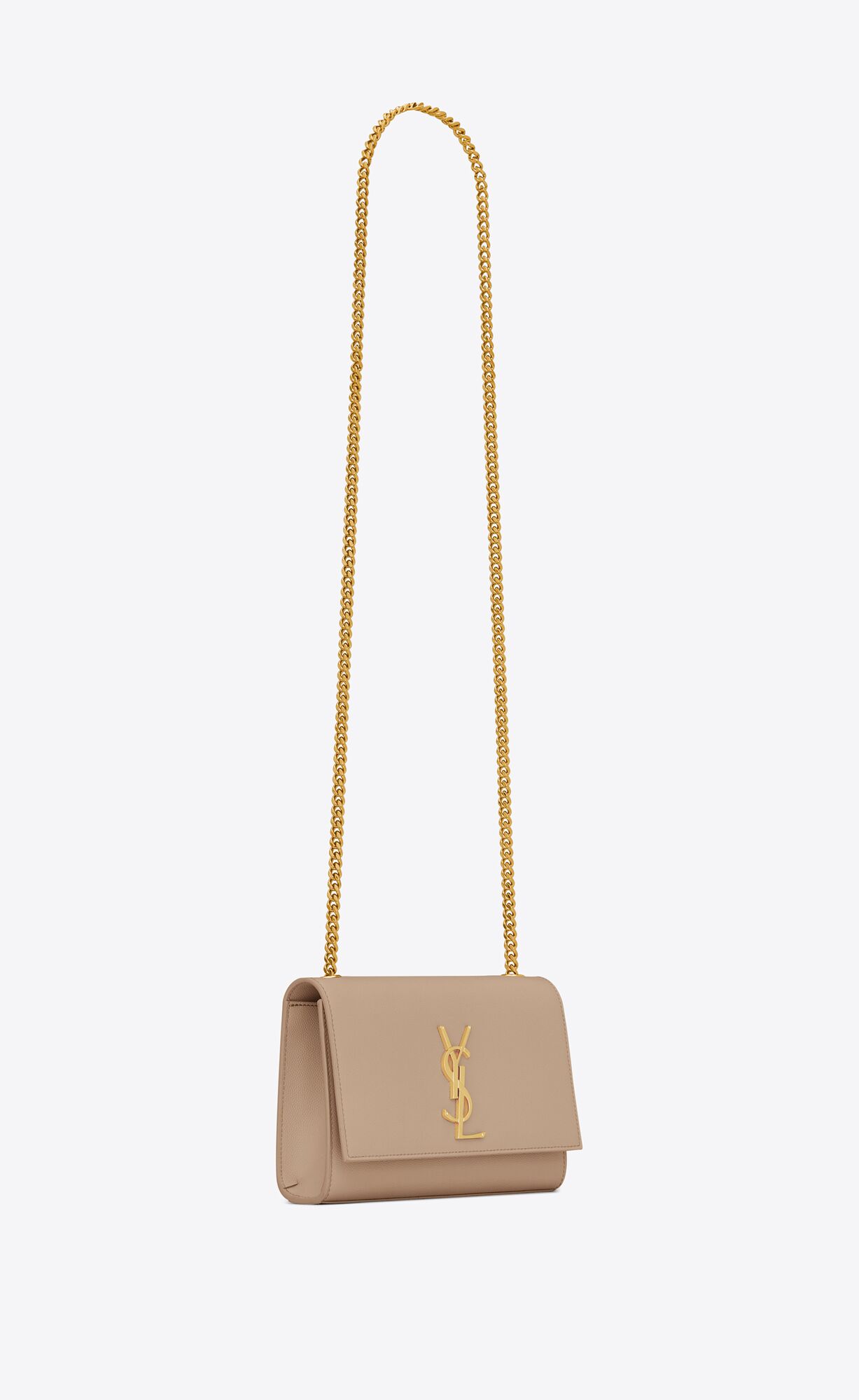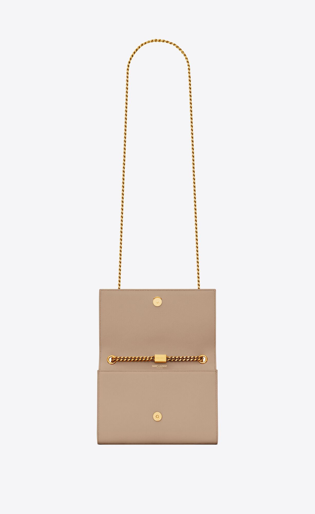 KATE SMALL CHAIN BAG IN GRAIN DE POUDRE EMBOSSED LEATHER-DARK BEIGE