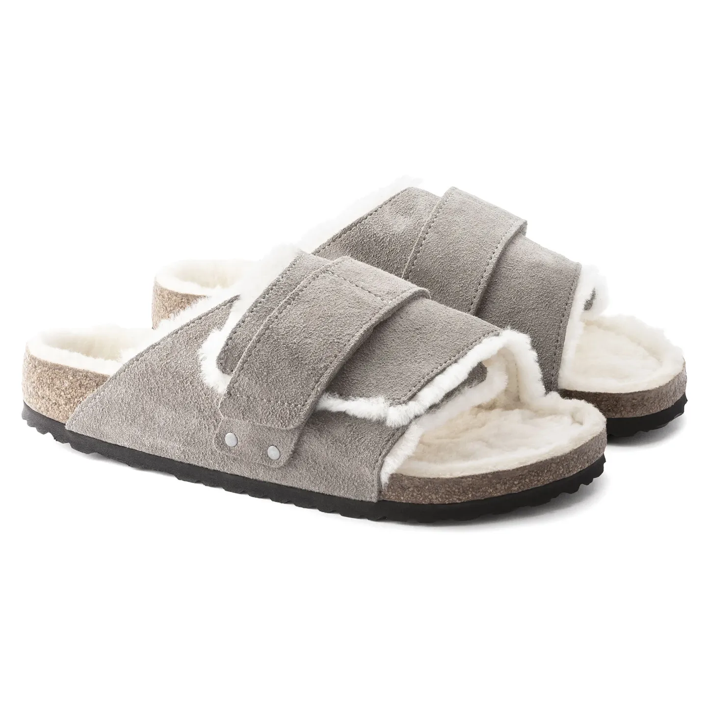 The BIRKENSTOCK Kyoto is reinterpreted from the classic Zürich model. The buckles have been replaced with a hook and loop closure for optimum fit. This version is incredibly cozy thanks to its shearling lining and padding. The upper is made from especially soft suede.