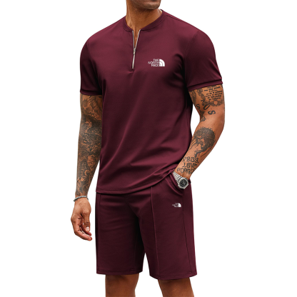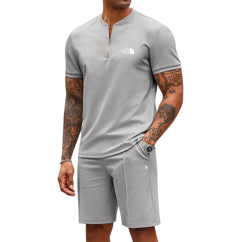 The Nothtrth Face Men's 2 Piece Clothing Casual Quarter Zip Polo T-Shirt and Shorts Set Sports Jogging Summer Sportswear