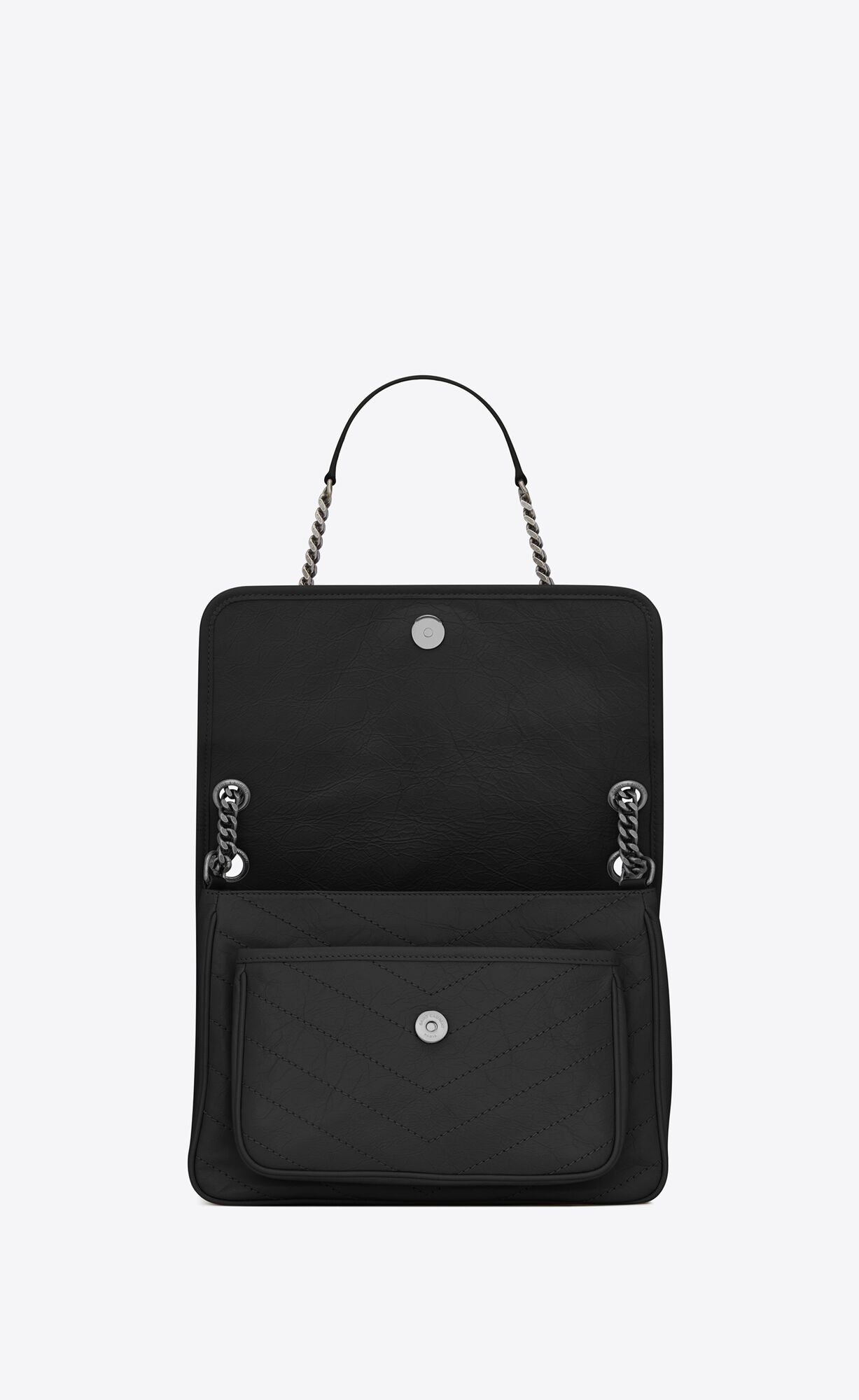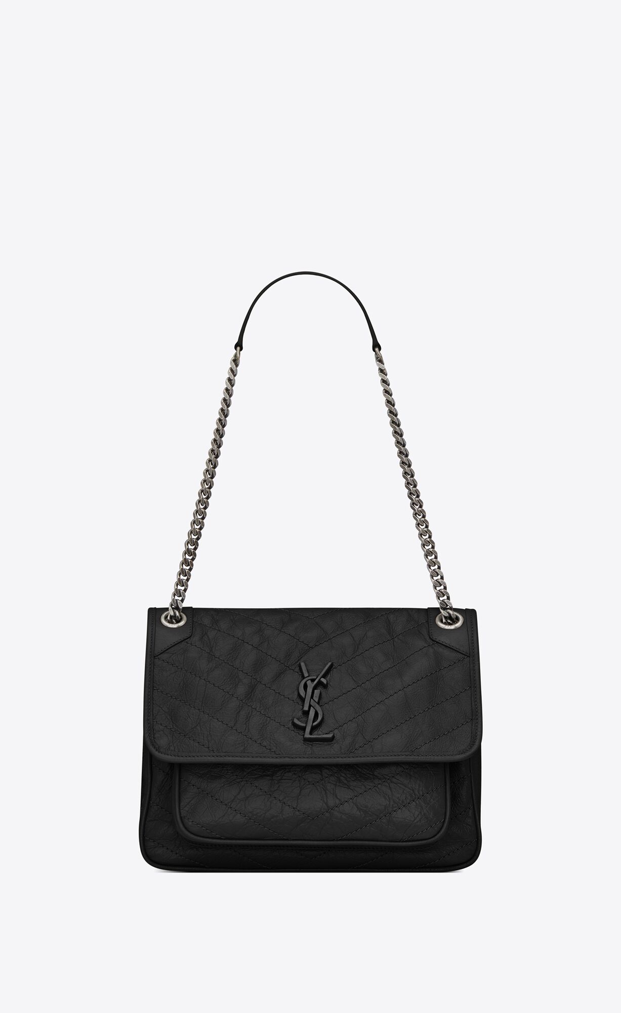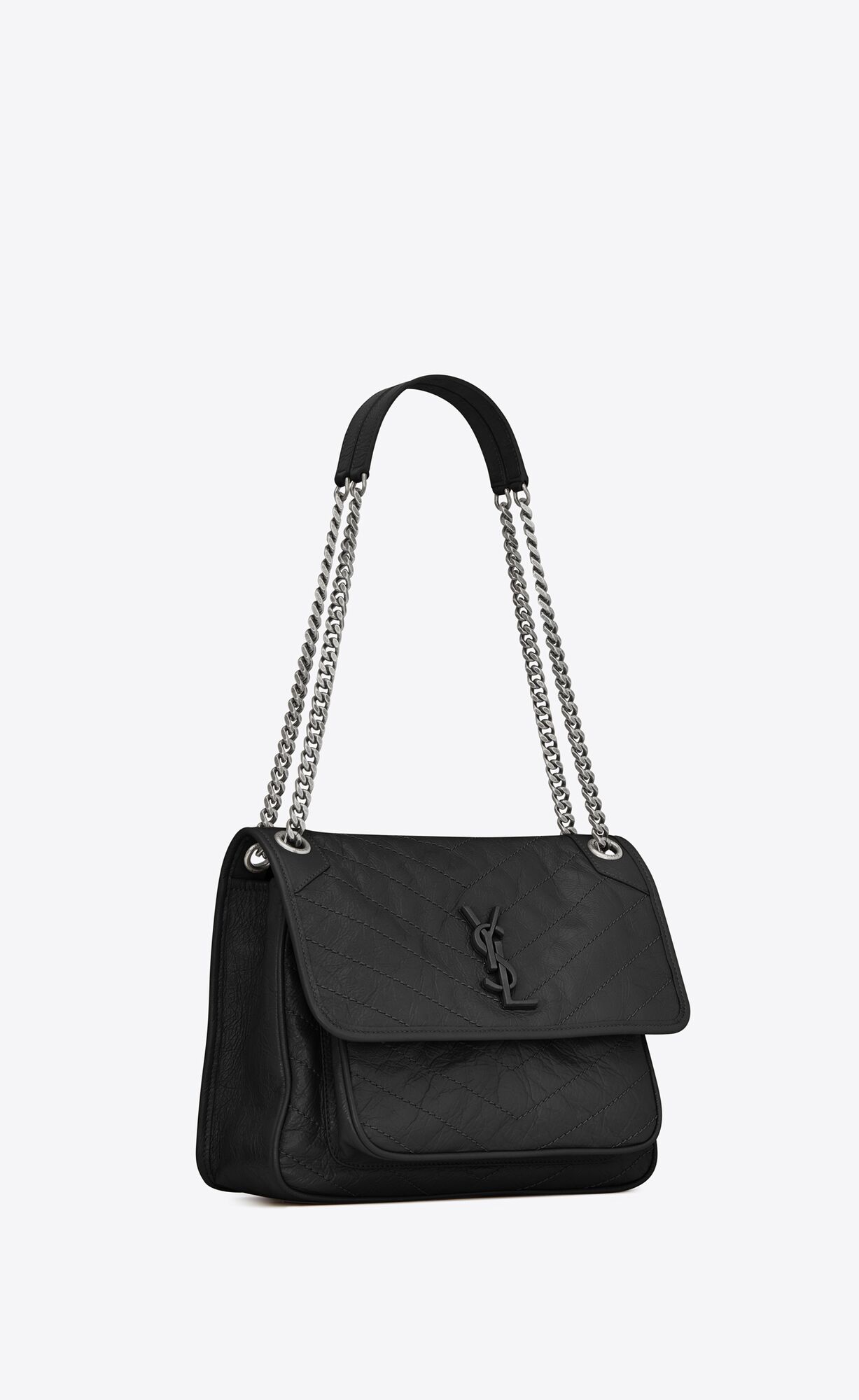 NIKI MEDIUM CHAIN BAG IN CRINKLED VINTAGE LEATHER-BLACK
