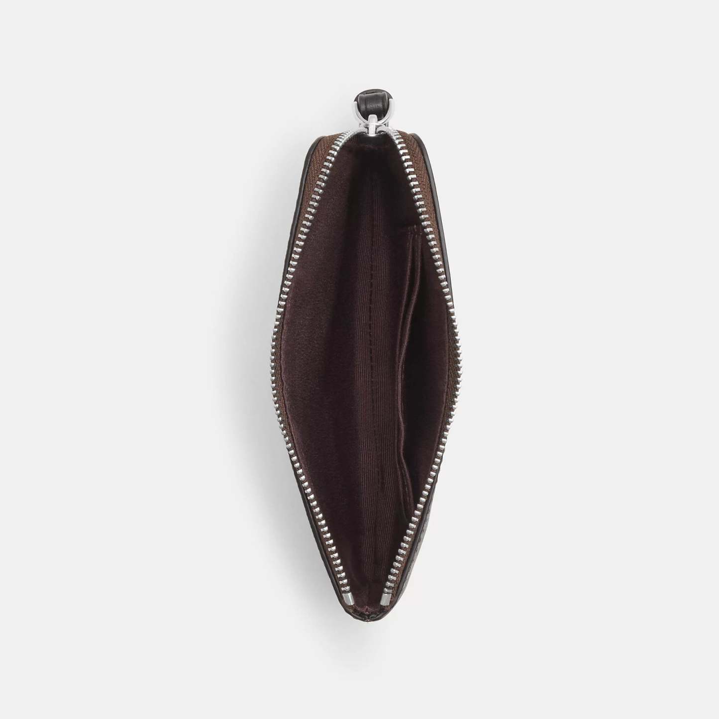Signature coated canvas and smooth leather Two credit card slots Zip-top closure fabric lining Wrist strap attached 6 1/4 (L) x 4 (H) x 1/2 (W) Style No. CP347 | Outlet Corner Zip Wristlet In Signature Canvas With Heart Print - Brown