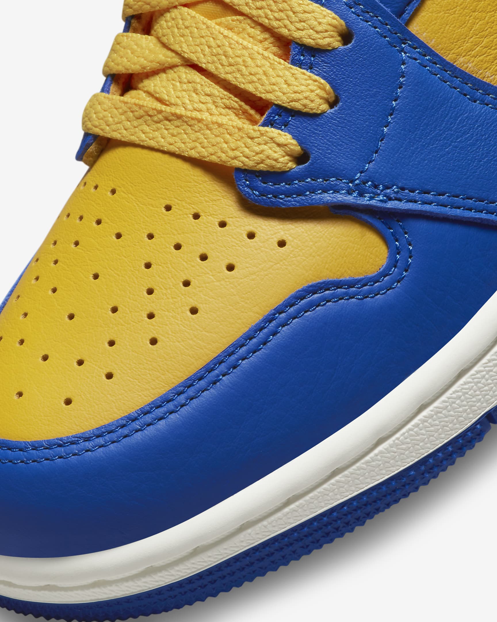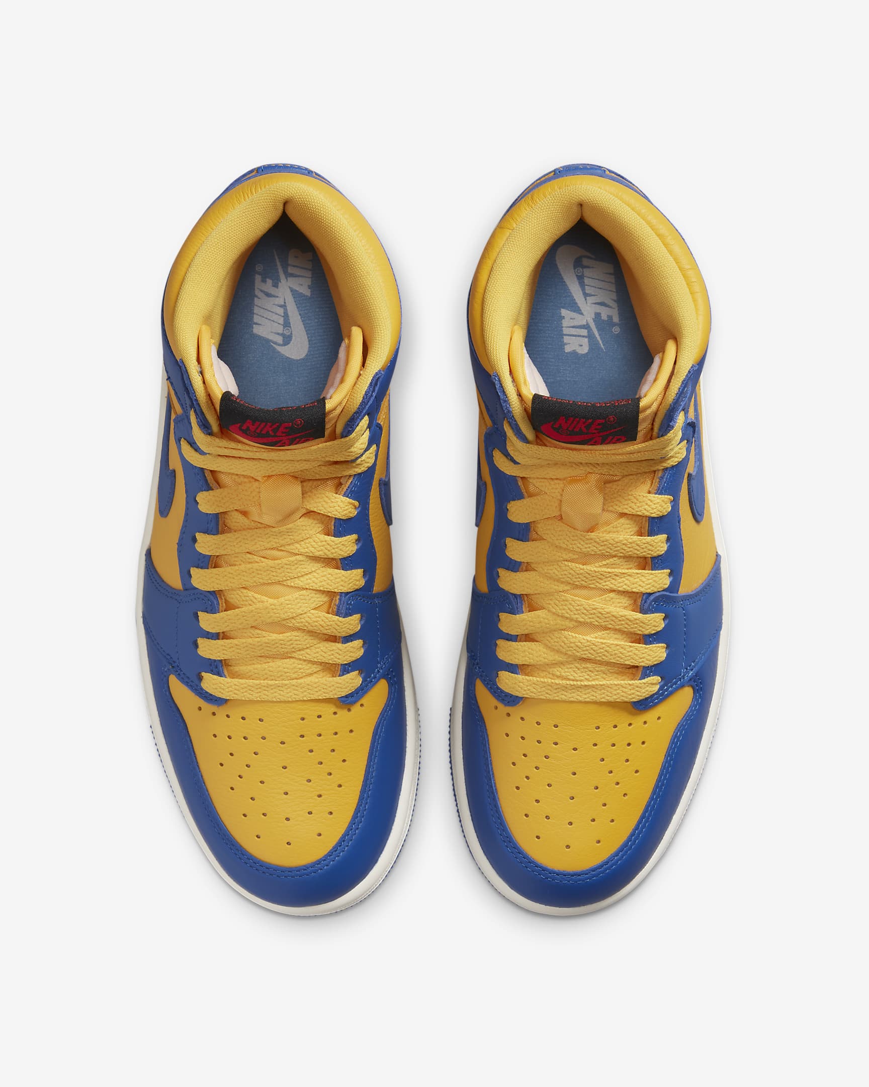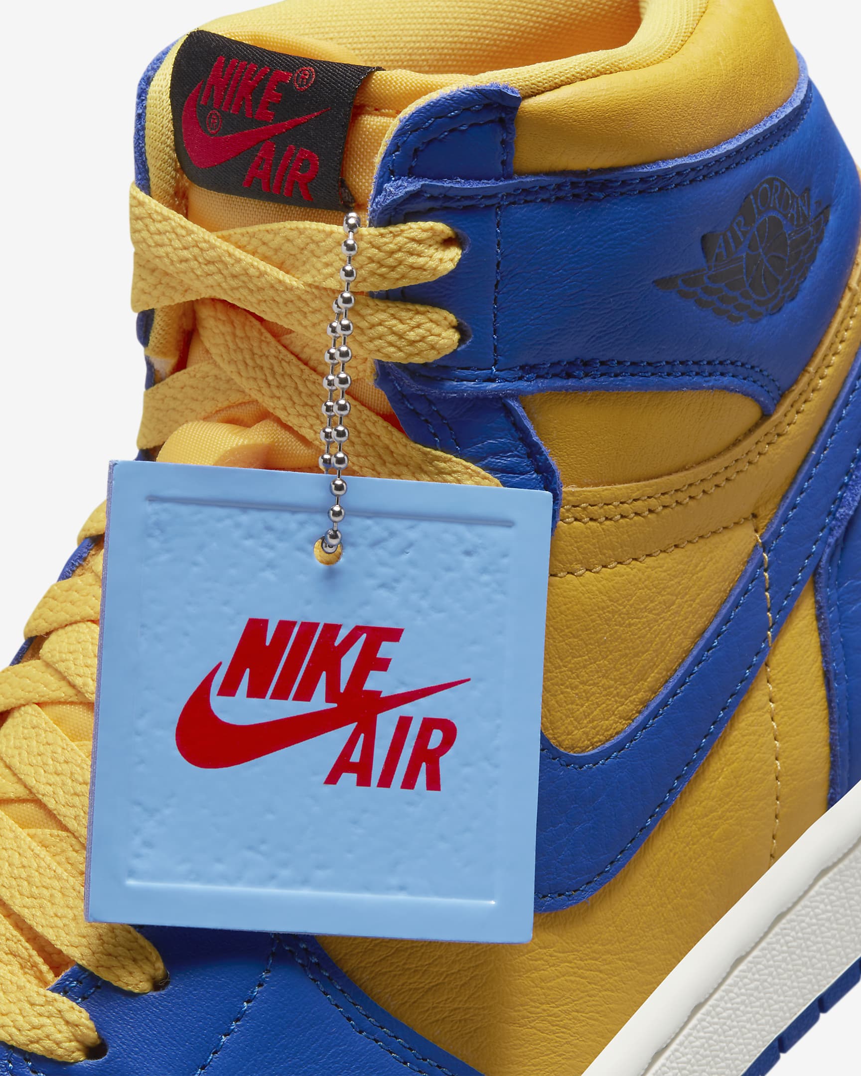 Game on! Inspired by MJ's high school days, this energetic colorway brings A+ energy to the streets. Bold bursts of Game Royal and Varsity Maize let you join the team in style, while subtly weathered leather ups the vintage appeal. Crafted details like the woven tongue label, hangtag and Wings logo add a premium boost to any 'fit. And the finishing touch Air cushioning underfoot lets you keep pace, so nothing holds you back from showing off your legendary look.