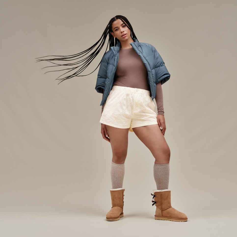 We added silky bows to our iconic sheepskin boot for a sweet, feminine look that's always been a fan fave. Crafted with soft sheepskin, this versatile boot features a durable, ultra-lightweight sole. The pretreated sheepskin upper repels moisture and protects against stains. These pull on boots are available in a range of neutral colors including black, browns, and greys.