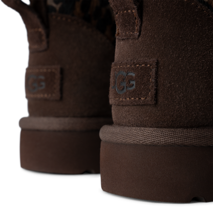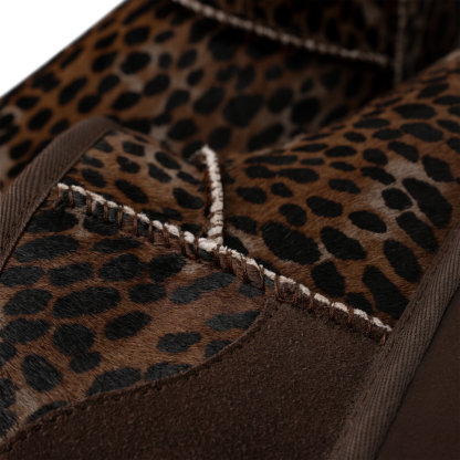 - Suede heel counter, Rear pull tab, Spotted print